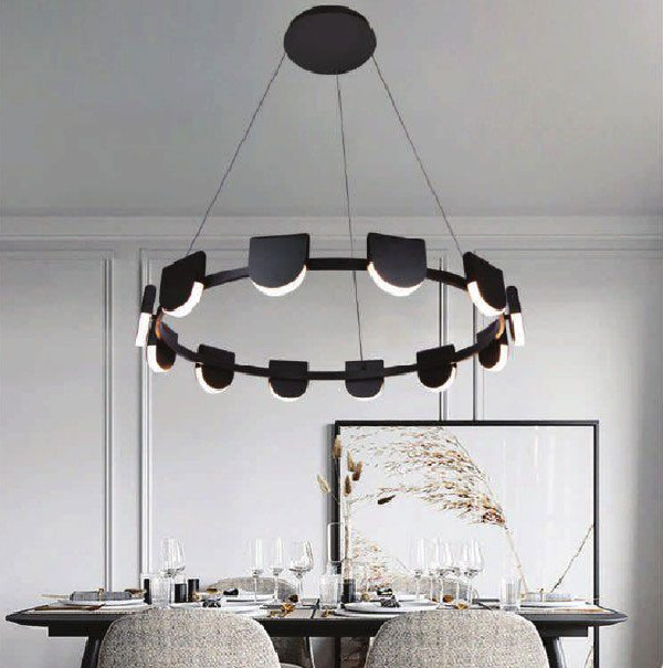 5. AN - TL- P17803/12A - 63W BK: Đèn thả vòng LED, thân đen - KT: Ø870mm x H1200mm - Đèn LED ánh sáng vàng 3000K