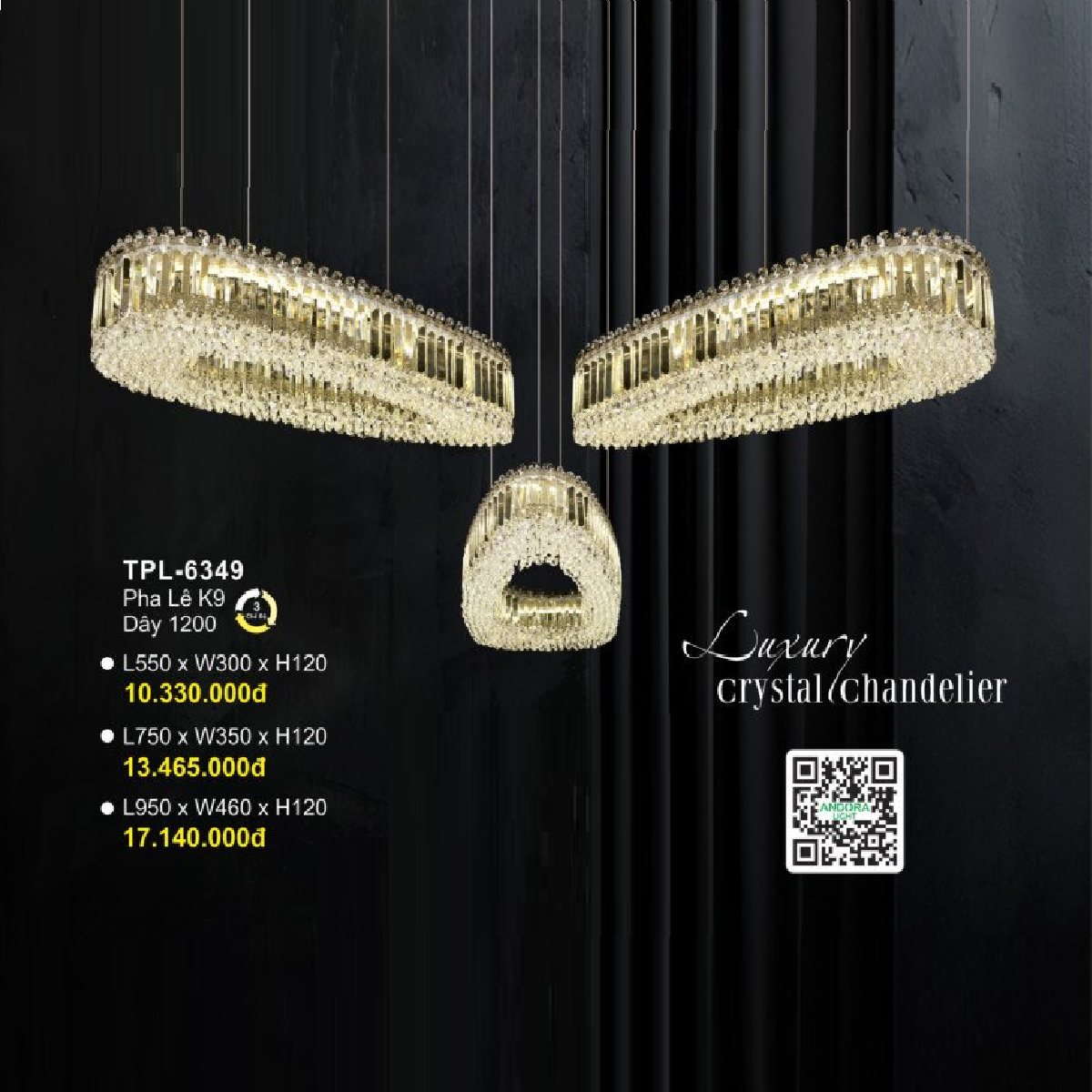 - Sản phẩm: A - TPL - 6349: Đèn thả Phale K9 - KT: L950mm x W460mm x H120mm + Dây 1200mm - Đèn LED đổi 3 màu