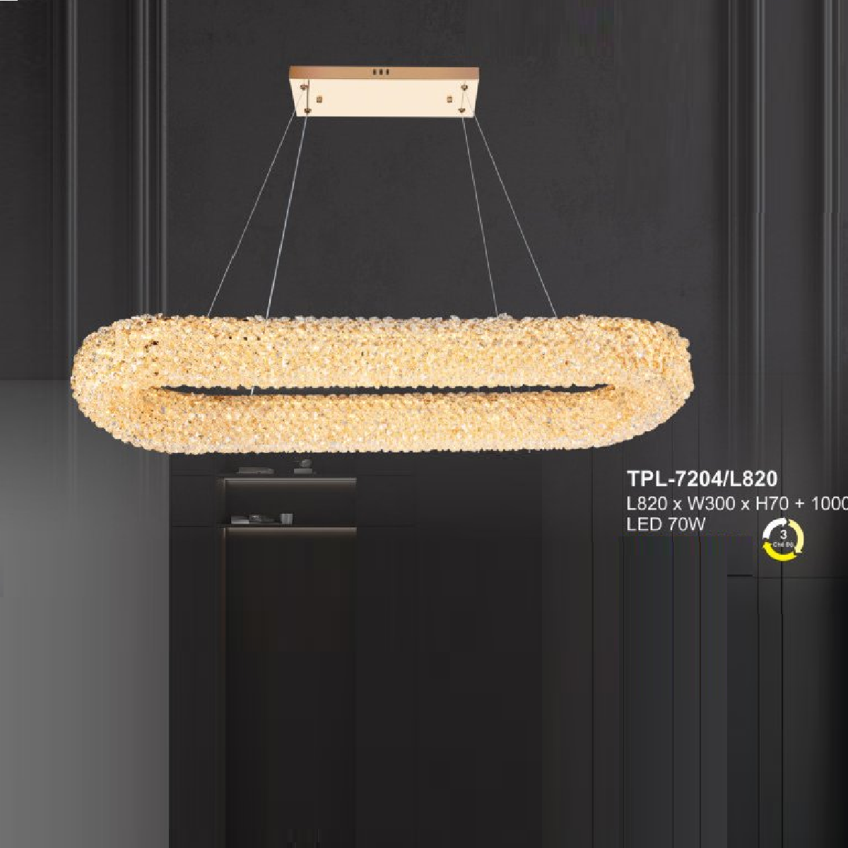A - TPL - 7200/L820: Đèn thả ngang LED Phale - KT: L820mm x W300mm x H70mm + 1000mm - Đèn LED 70W đổi 3 màu