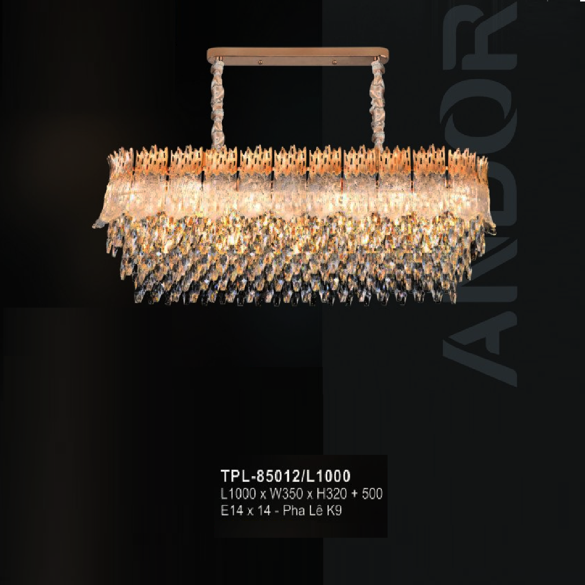 A - TPL - 85012/L1000: Đèn thả Phale K9 gắn ngang - KT: L1000mm x W350mm x H320mm +500mm - Bóng đèn E14 x 14 bóng