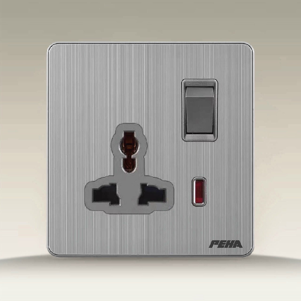 1. Ổ cắm 3 chấu đa năng + Công tắc khóa, có tiếp địa chống giật