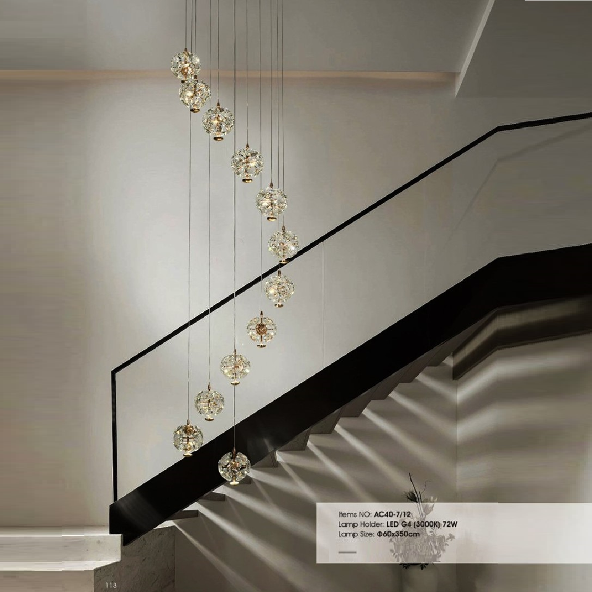 • Sản phẩm: AC 40-7/12: Đèn thả dây chao quả cầu phale LED - KT: Ø600mm x H3500mm - Đèn LED G4 72W ánh sáng vàng 3000K