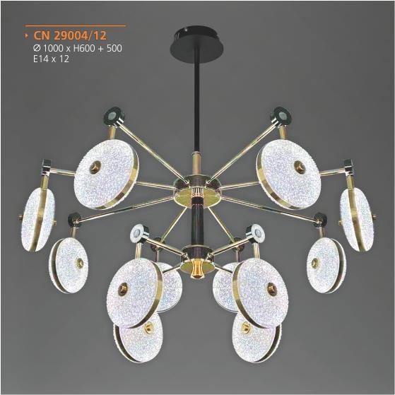 - Sản phẩm: AD - CN 29004/12: Đèn chùm 12 tay - KT: Ø1000mm x H600mm+500mm - Đèn chân E14 x 16 bóng ( tính riêng)