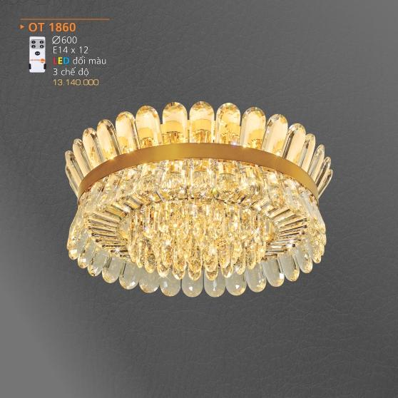 - Sản phẩm: AD - OT 1860: Đèn áp trần phale - KT: Ø600mm - Đèn E14 x 12 bóng LED đổi 3 màu - Remote