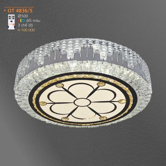 AD - OT 4836/5: Đèn áp trần LED - KT: Ø500mm - Đèn LED đổi 3 màu - Remote