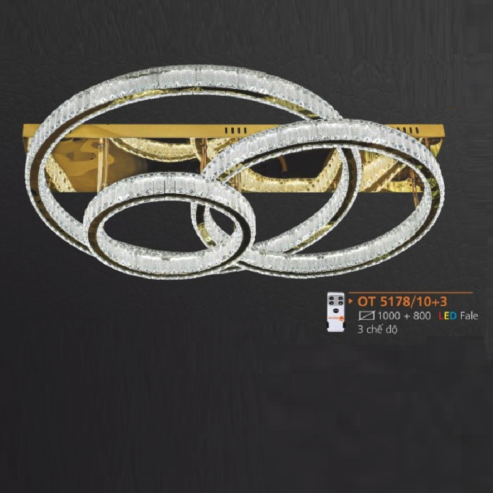 5. AD - OT 5178/10+3: Đèn áp trần Phale LED - KT: L1000mm x W1000mm +800mm - Đèn LED đổi 3 màu