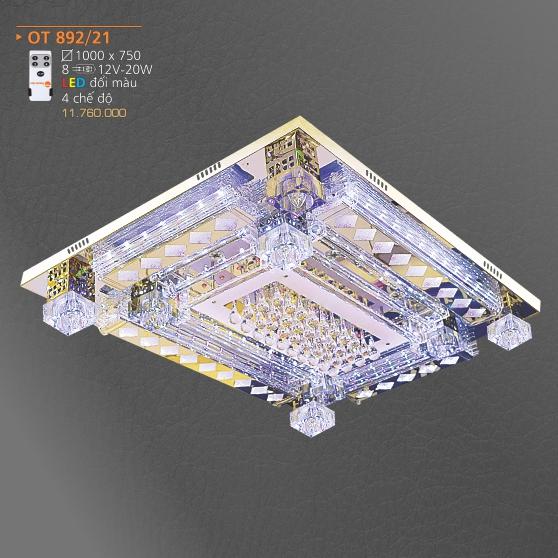 • Sản phẩm: AD - OT 892/21: Đèn áp trần LED - KT: 1000mm x 750mm - Đèn LED đổi màu + bóng ghi (12V, 20W ) x 8 bóng
