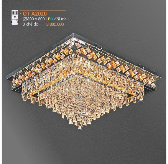 - Sản phẩm: AD - OT A2020: Đèn áp trần vuông LED - KT: 800mm x 800mm - Đèn LED đổi 3 màu - Remote