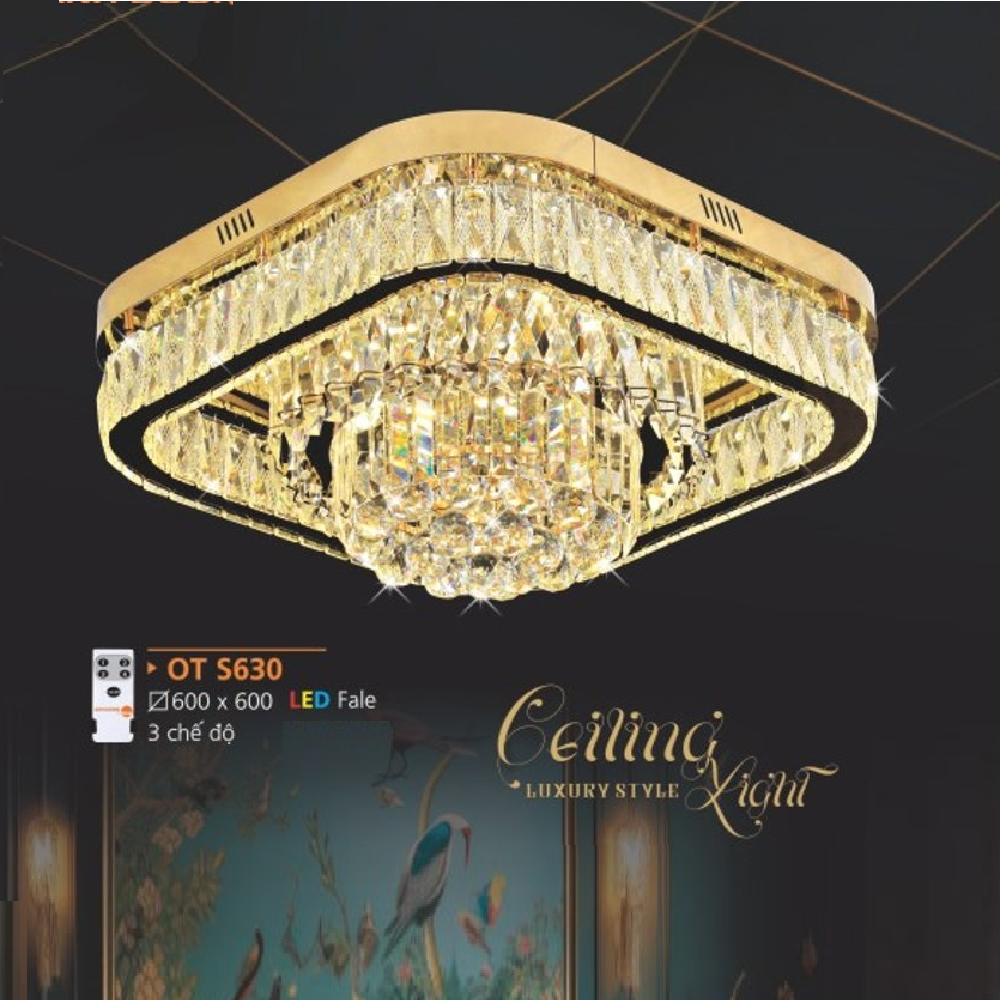 - Sản phẩm: AD - OT S630: Đèn áp trần LED Phale vuông - KT: L600mm x W600mm - Đèn LED đổi 3 màu