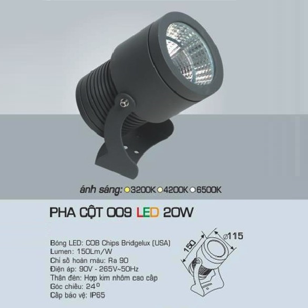 • Sản phẩm: AFC - 009 LED 20W: Đèn pha cột LED 20W - Ánh sáng vàng/trung tính/trắng