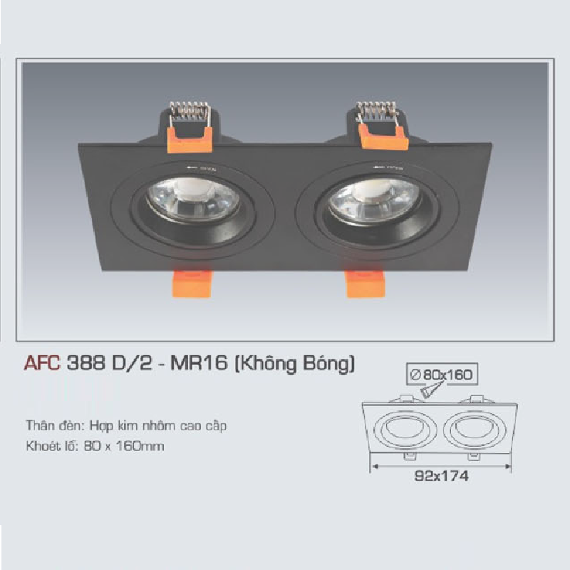 • Sản phẩm: AFC 388D/2 - MR 16: Bộ gọng đèn đôi sử dụng bóng MR16