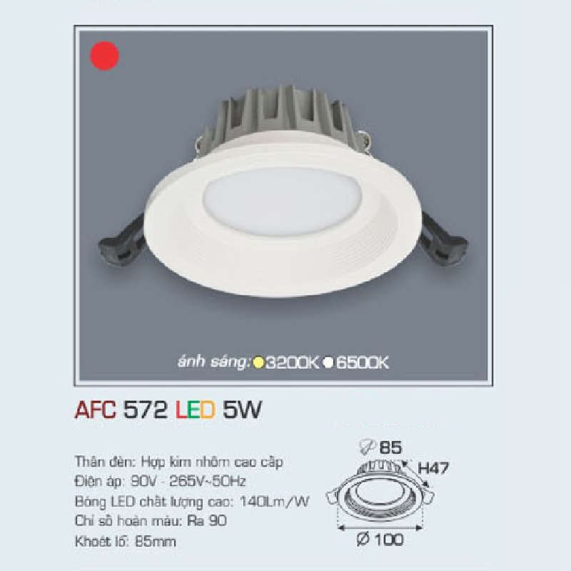 • Sản phẩm: AFC 572 LED 5W: Đèn LED âm trần 5W1 chế độ ánh sáng (vàng / trắng)