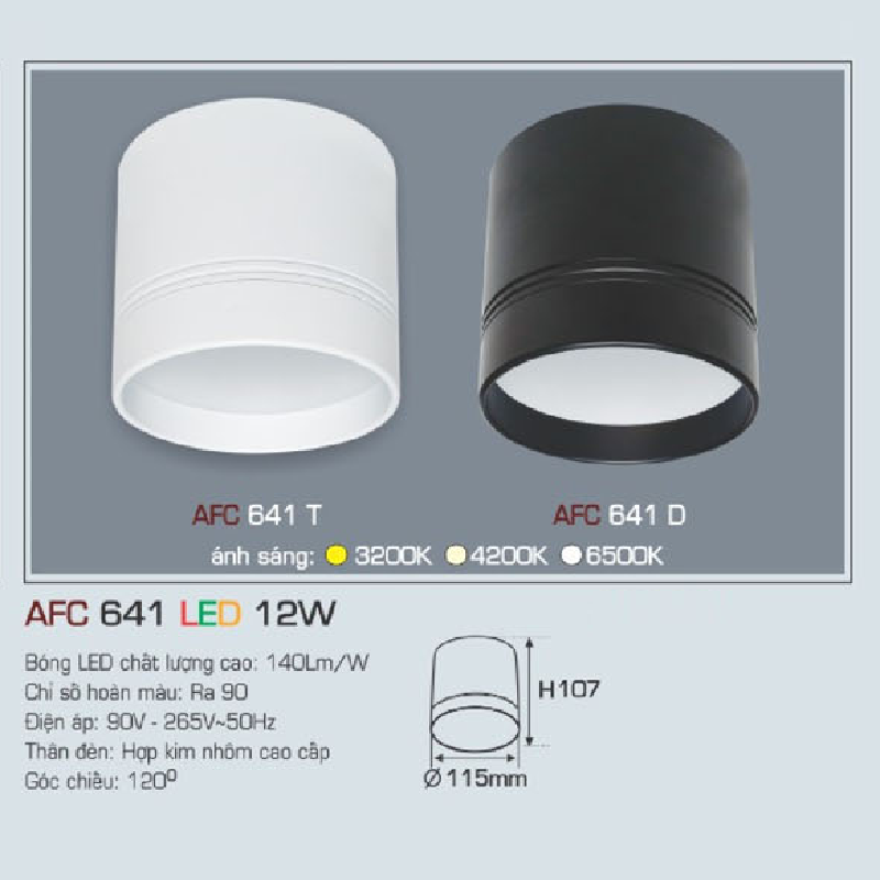 - Sản phẩm: AFC 641 LED 12W: Đèn lon LED gắn nổi 12W, 1 chế độ ánh sáng (vàng/Trung tính/trắng)