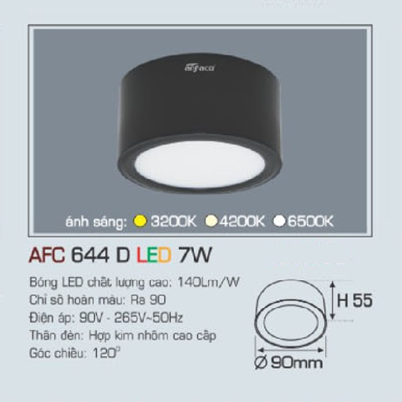 • Sản phẩm: AFC 644 D LED 7W: Đèn lon gắn nổi LED 7W, 1 chế độ ánh sáng ( vàng/trung tính/trắng)