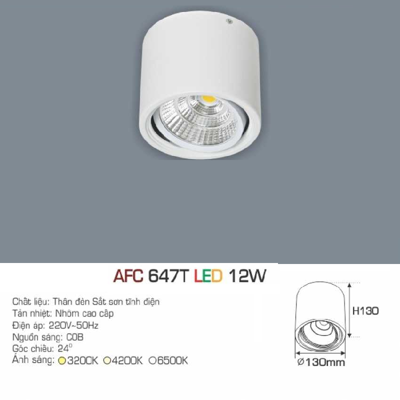 - Sản phẩm: AFC 647 T LED 12W: Đèn lon LED chiếu điểm gắn nổi 12W - KT: Ø130mm x H130mm - Ánh sáng Trắng/vàng/Trung tính