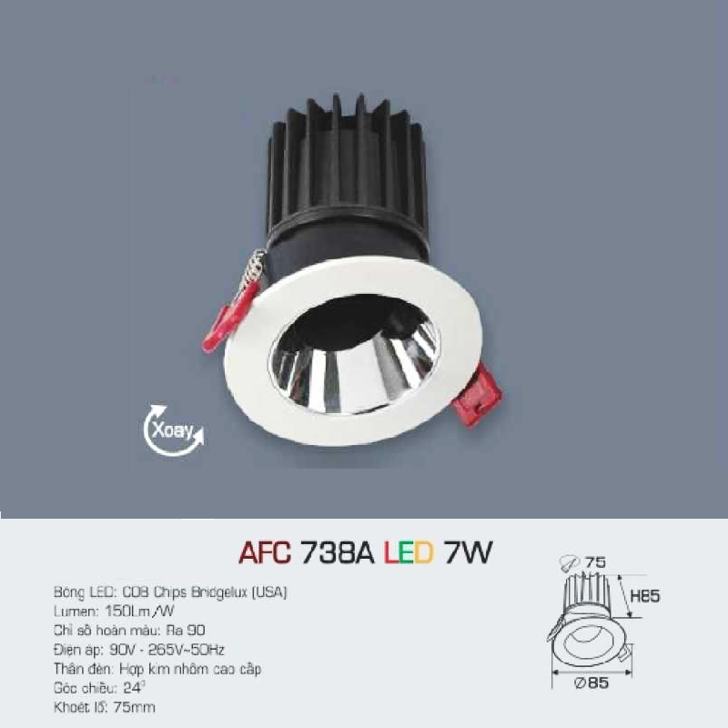 AFC 738A LED 7W: Đèn LED chiếu điểm 7W - KT: Ø85mm x H85mm - Lổ khoét: Ø75mm - Ánh sáng vàng/trắng/trung tính