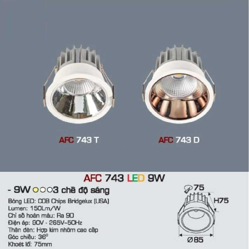 AFC 743 LED 9W: Đèn LED chiếu điểm 9W ( chóa trắng/vàng) - KT: Ø85mm x H75mm - Lổ khoét: Ø75mm - Ánh sáng vàng/trắng/trung tính