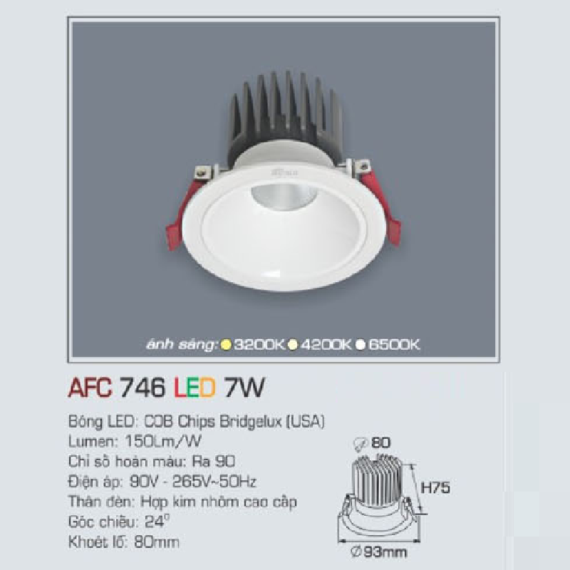 - Sản phẩm: AFC 746 LED 7W: Đèn LED chiếu điểm 7W, 1 chế độ ánh sáng (vàng/trắng/trung tính)
