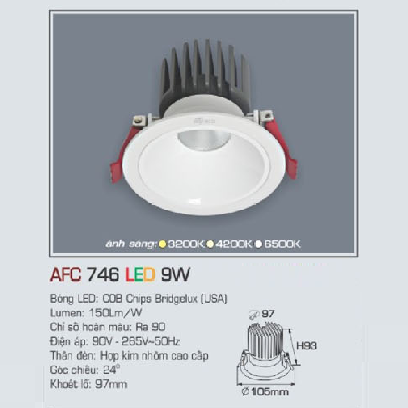 - Sản phẩm: AFC 746 LED 9W: Đèn LED chiếu điểm 9W, 1 chế độ ánh sáng (vàng/trắng/trung tính)
