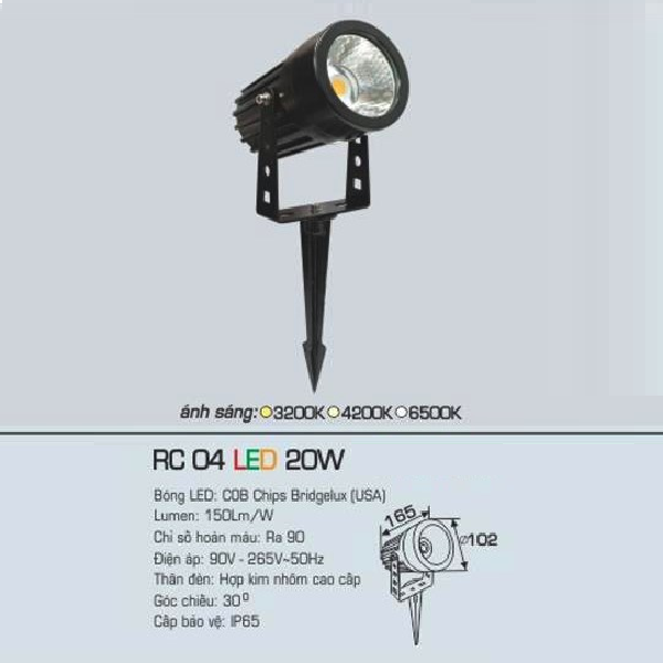 • Sản phẩm: AFC - RC 04 LED 20W: Đèn pha ( ghim cỏ) LED 20W - Ánh sáng Vàng/Trung tính/Trắng