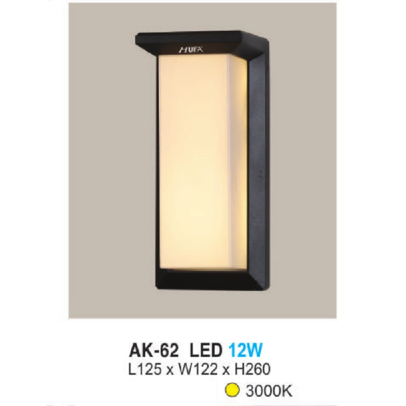 AK - 62: Đèn LED gắn tường ngoài trời - KT: L125mm x W122mm x H260mm - Đèn LED ánh sáng vàng 3000K