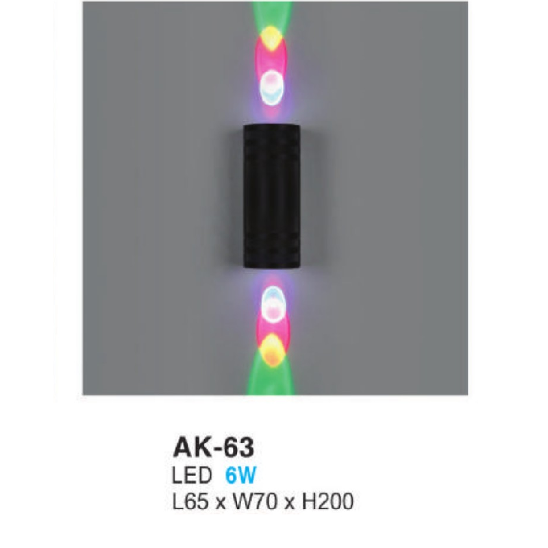 AK - 63: Đèn LED gắn tường ngoài trời - KT: L65mm x W70mm x H200mm - Đèn LED 6W, ánh sáng màu