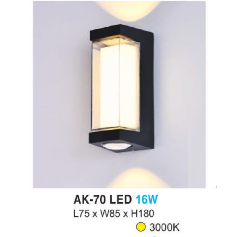 AK - 70: Đèn LED gắn tường ngoài trời - KT: L75mm x W85mm x H180mm - Đèn LED ánh sáng vàng 3000K