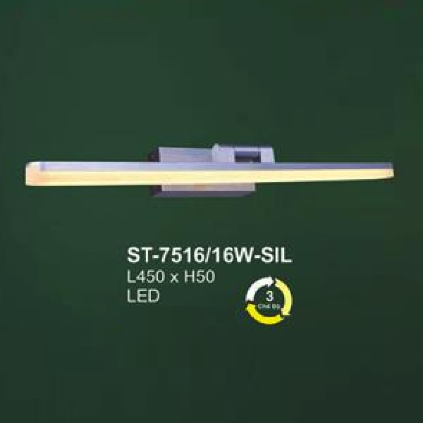 - Sản phẩm: AN - ST - 7516/16W-SIL: Đèn rọi tranh/rọi gương, thân đèn màu bạc - KT: L450mm x H50mm - Đèn LED đổi 3 màu