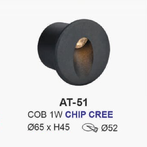 5. AT - 51: Đèn LED âm tường/âm bậc cầu thang - IP 54 - KT: Ø65mm x H45mm - Lổ khoét: Ø52mm - Bóng đèn LED COB 1W Chịp Cree ( Mỹ)