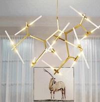 - Sản phẩm: AU - ĐT - 1996/20 (vàng/ đen): Đèn chùm LED G9*20 bóng, KT: L2000mm*W750mm*H950mm