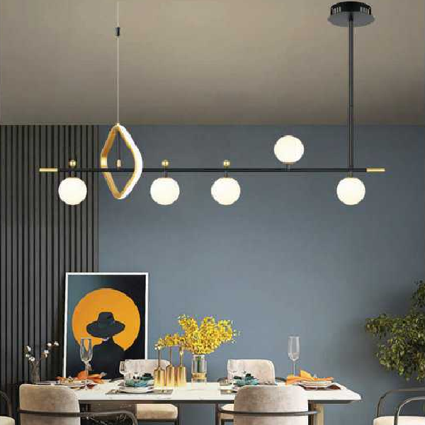 - Sản phẩm: AN - TL - 9009BK: Đèn thả ngang thân đen - KT: L1100mm x H1000mm - Đèn LED đổi 3 màu