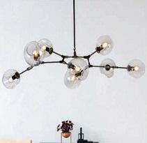- Sản phẩm: AU - ĐT 2705/8: Chùm 8 bóng ( thân đen chao khói/thân vàng chao trà), KT: W1100mm