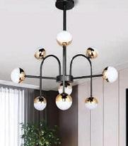 HF - TNT 216/8Đ: Đèn chùm 8 tay, choá đèn hợp kim sơn đen, KT: Ø930mm*H1000mm