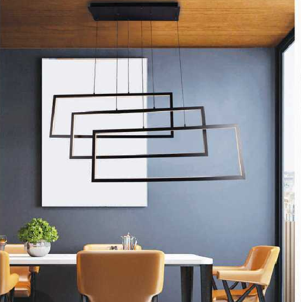 AU -TL - P18010/96W-B/BK: Đèn thả LED 3 vòng - KT: L1210mm x W220mm x H1200mm - Đèn LED 96W ánh sáng vàng 3000K