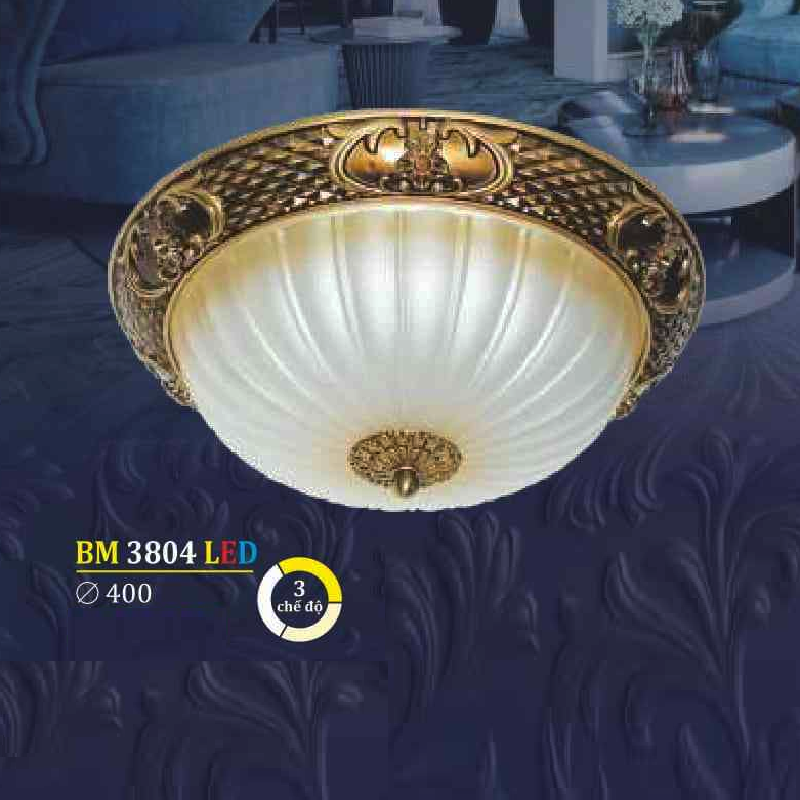 - Sản phẩm: BM 3804 LED: Đèn ốp trần LED, chao thủy tinh - KT: Ø400mm - Đèn LED đổi 3 màu