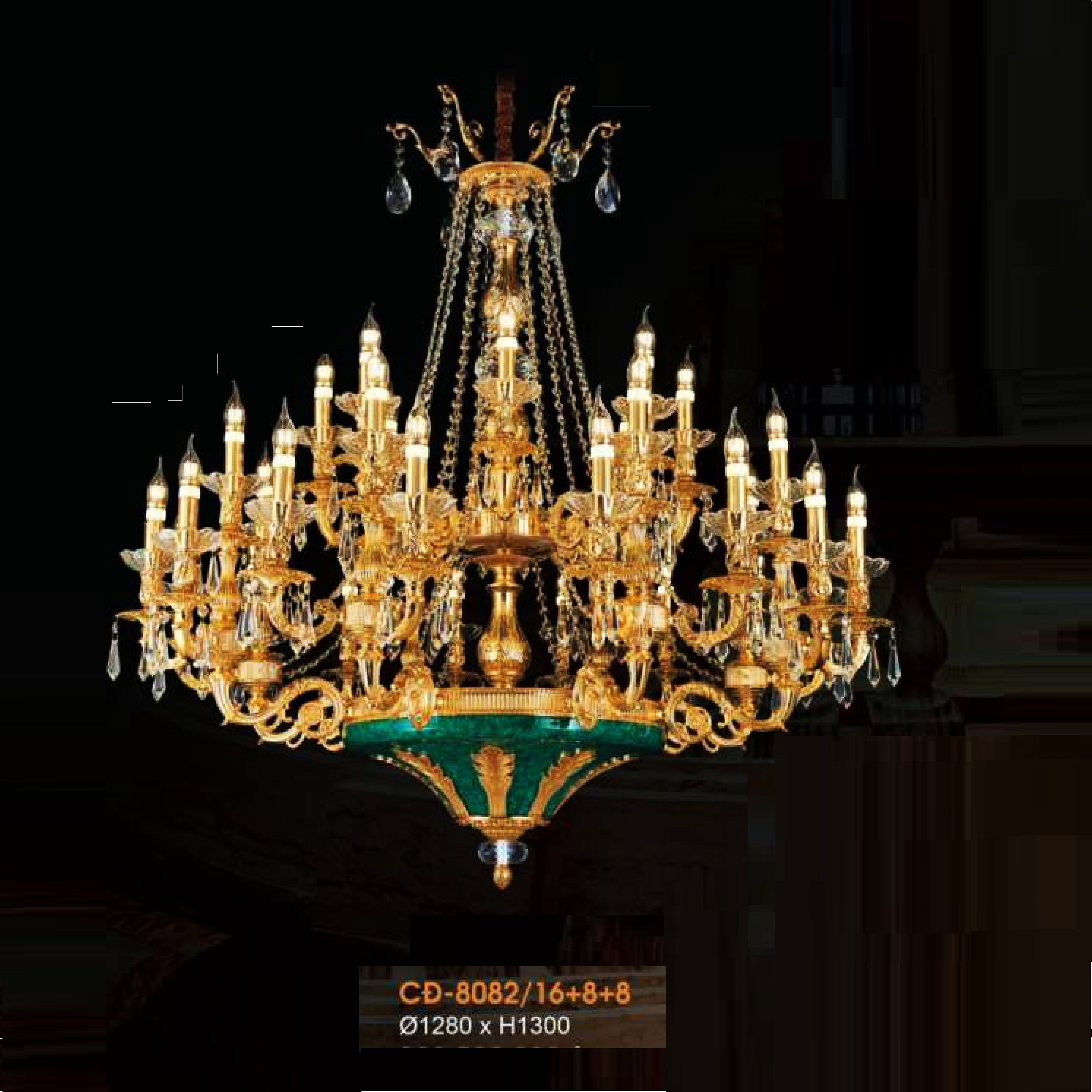 • Sản phẩm: CĐ - 8082/16+8+8: Đèn chùm đồng nến 32 tay - KT: Ø1280mm x H1300mm - Bóng đèn nến E14 x 36 bóng