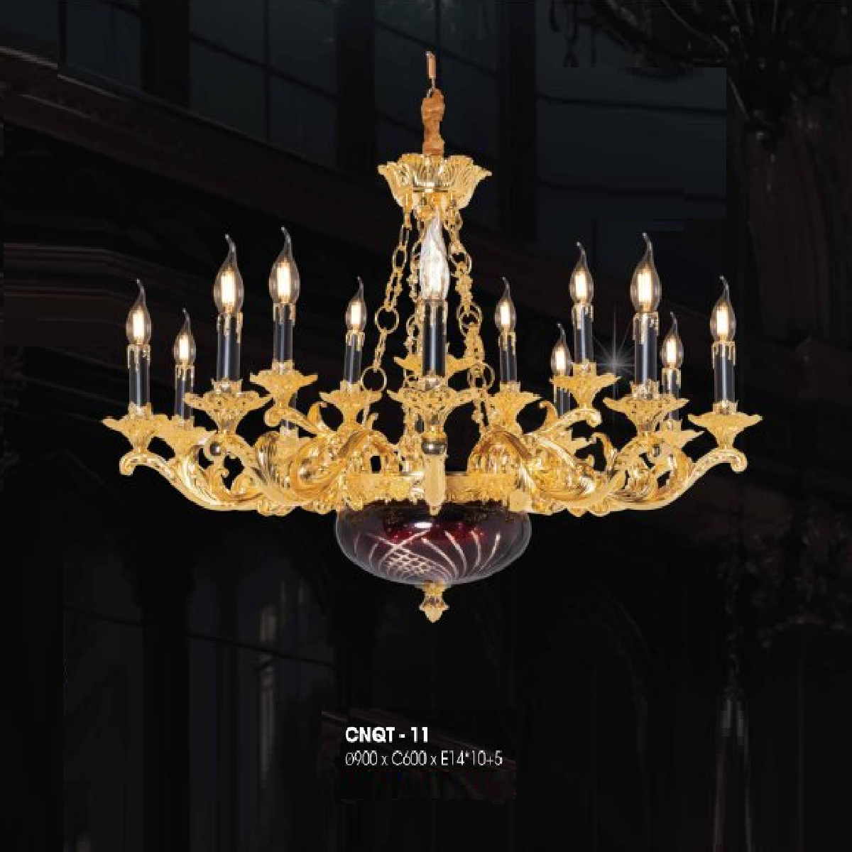 CNQT - 11: Đèn chùm nến 15 tay - KT: Ø900mm x H600mm - Bóng đèn E14 x 15 bóng