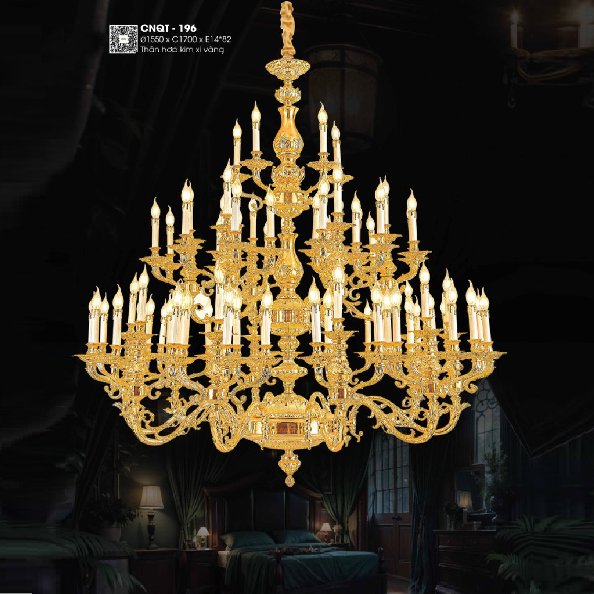 5. CNQT - 196: Đèn chùm nến 82 tay - KT: Ø1550mm x H1700mm - Bóng đèn nến E14 x 82 bóng