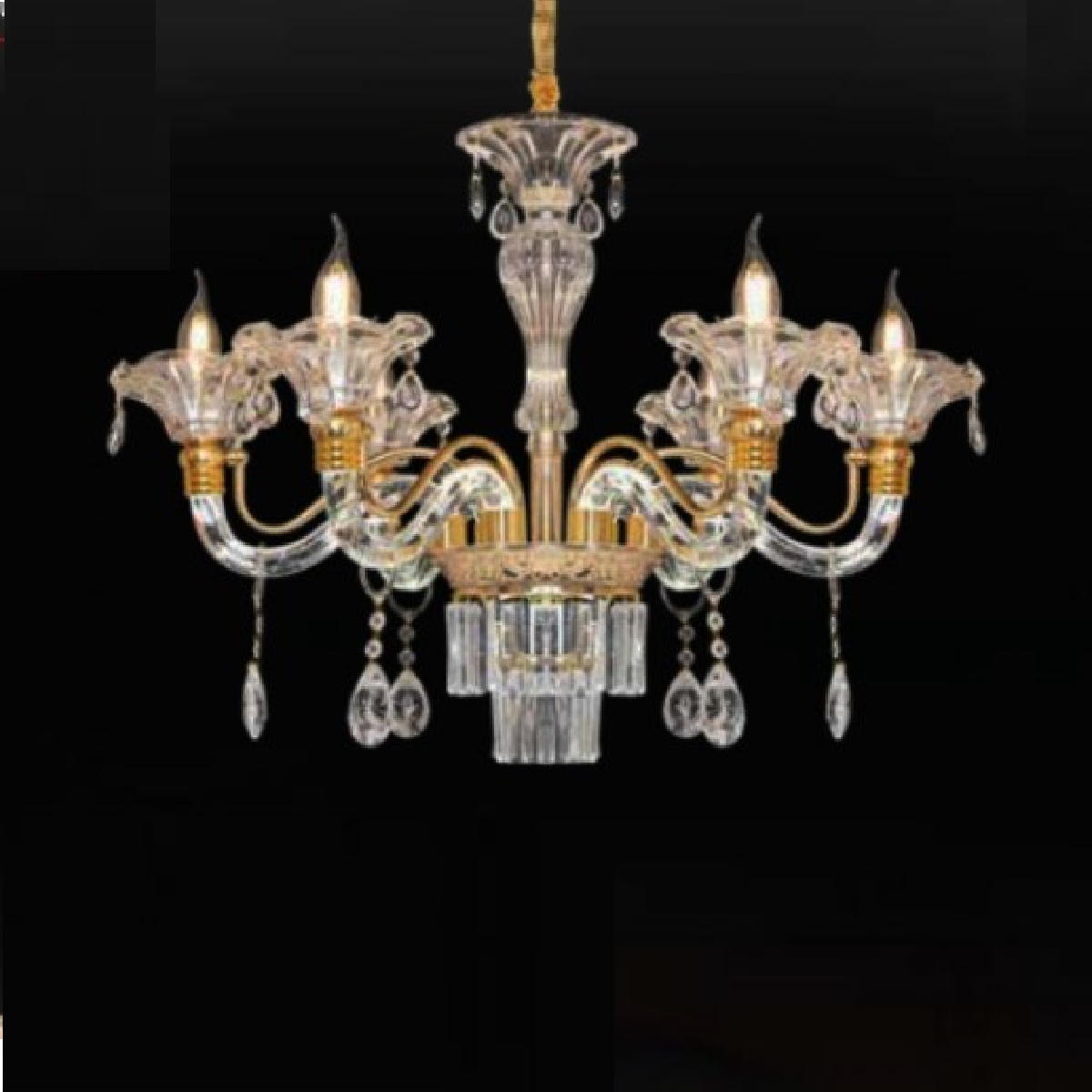 • Sản phẩm: CNQT - 276: Đèn chùm nến 6 tay, chao thủy tinh - KT: Ø700mm x H900mm - Bóng đèn nến E14 x 6 bóng