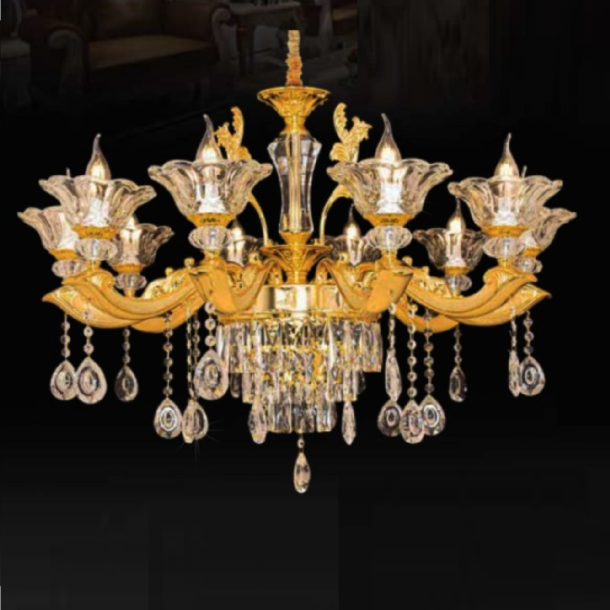 CNQT - 257: Đèn chùm nến  phale K9 15 tay - KT: Ø950mm x H1100mm - Bóng đèn nến chân E14 x 15 bóng