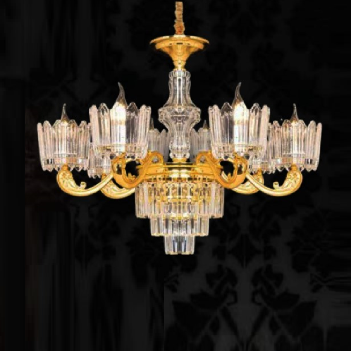 - Sản phẩm: CNQT - 284: Đèn chùm nến 8 tay - KT: Ø700mm x H900mm - Bóng đèn nến E14 x 8 bóng