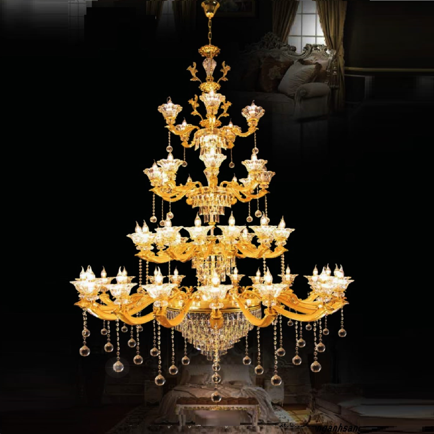 - Sản phẩm: CNQT - 342: Đèn chùm phale nến 50 tay - KT: Ø1700mm x H2800mm - Bóng đèn nến chân E14 x 50 bóng