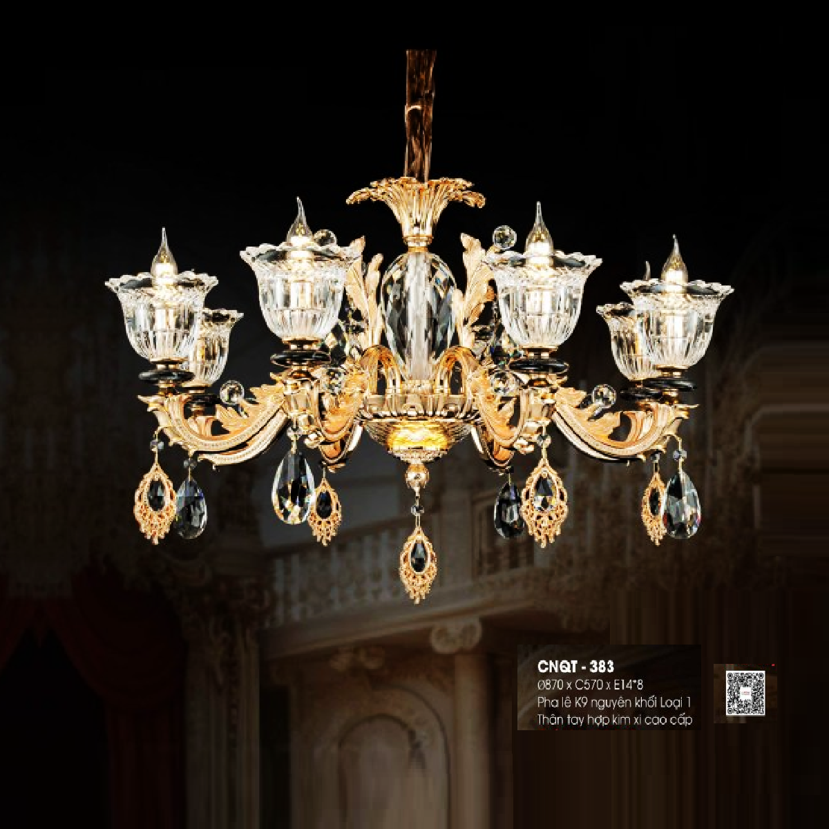 5. CNQT - 383: Đèn chùm nến Phale K9 8 tay - KT: Ø870mm x H570mm - Bóng đèn E14 x 8 bóng