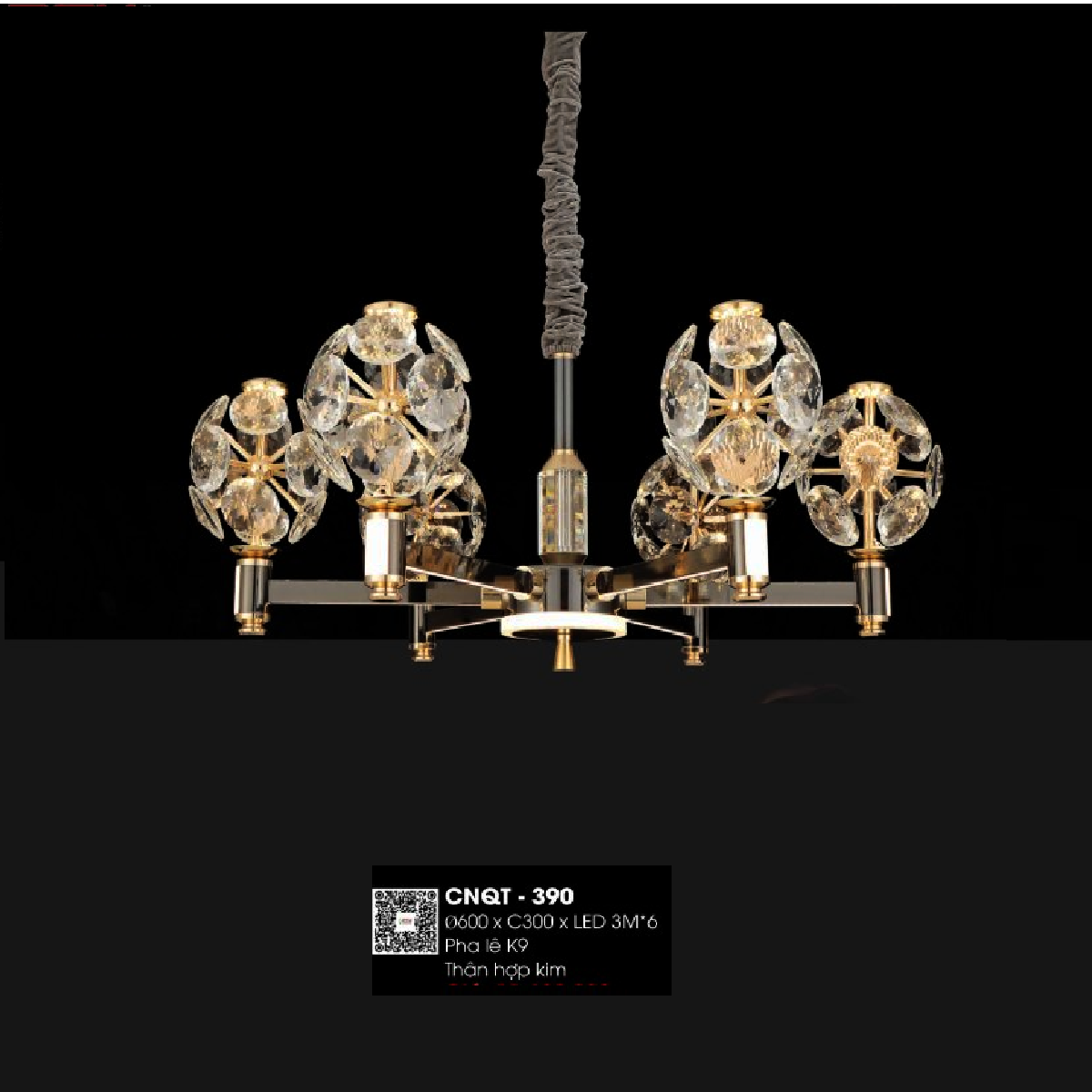 • Sản phẩm: CNQT - 390: Đèn chùm LED Phale K9 6 tay - KT: Ø600mm x H300mm - Bóng đèn LED 3M x 6