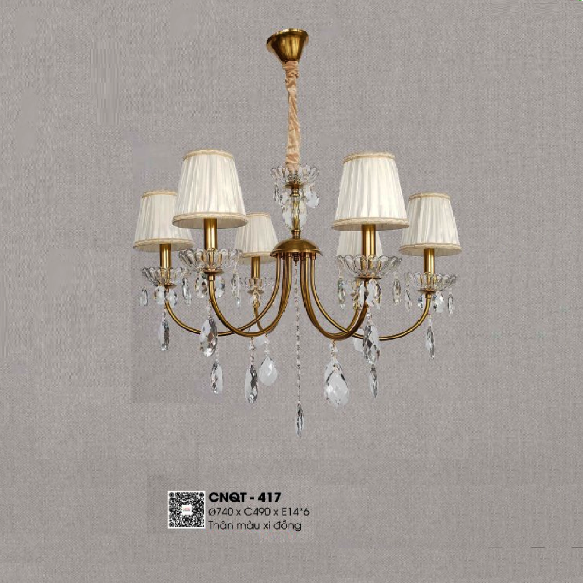 • Sản phẩm: CNQT - 417: Đèn chùm 6 tay - KT: Ø740mm x H490mm - Bóng đèn E14 x 6 bóng