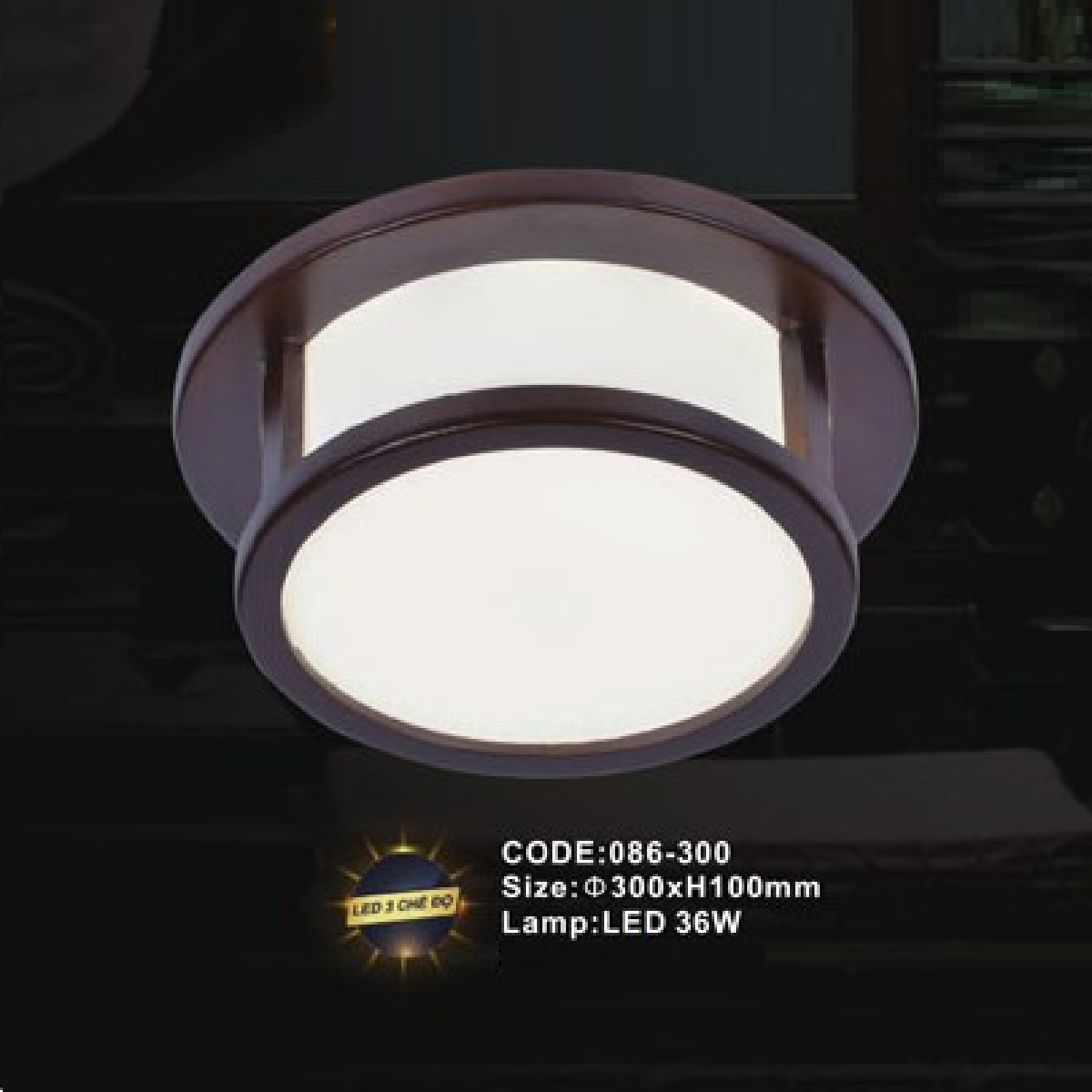 5. CODE: 086-300: Đèn áp trần LED - KT: Ø300mm x H100mm - Đèn LED 36W ánh sáng đổi 3 màu