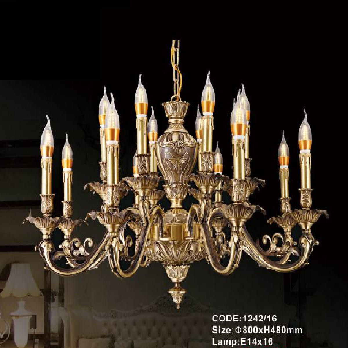 - Sản phẩm: CODE: 1242/16: Đèn chùm đồng 16 tay, chao đá - KT: Ø 800mm x H 480mm - Bóng đèn chân E14 x 16 bóng