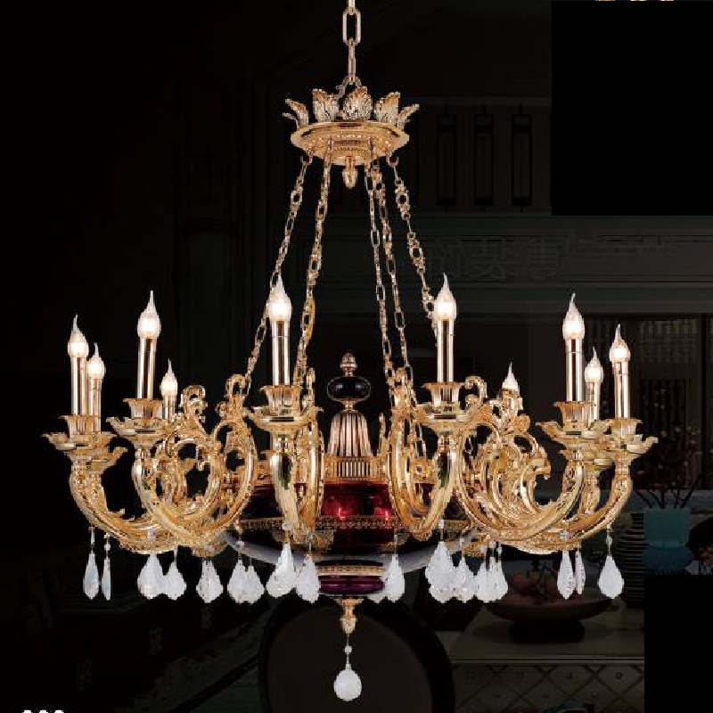 E - CD 183/8+4: Chùm đồng 12 tay, chao đá - KT: Ø930mm x H680mm - Bóng đèn chân E14 x 12 bóng + Đèn LED SMD