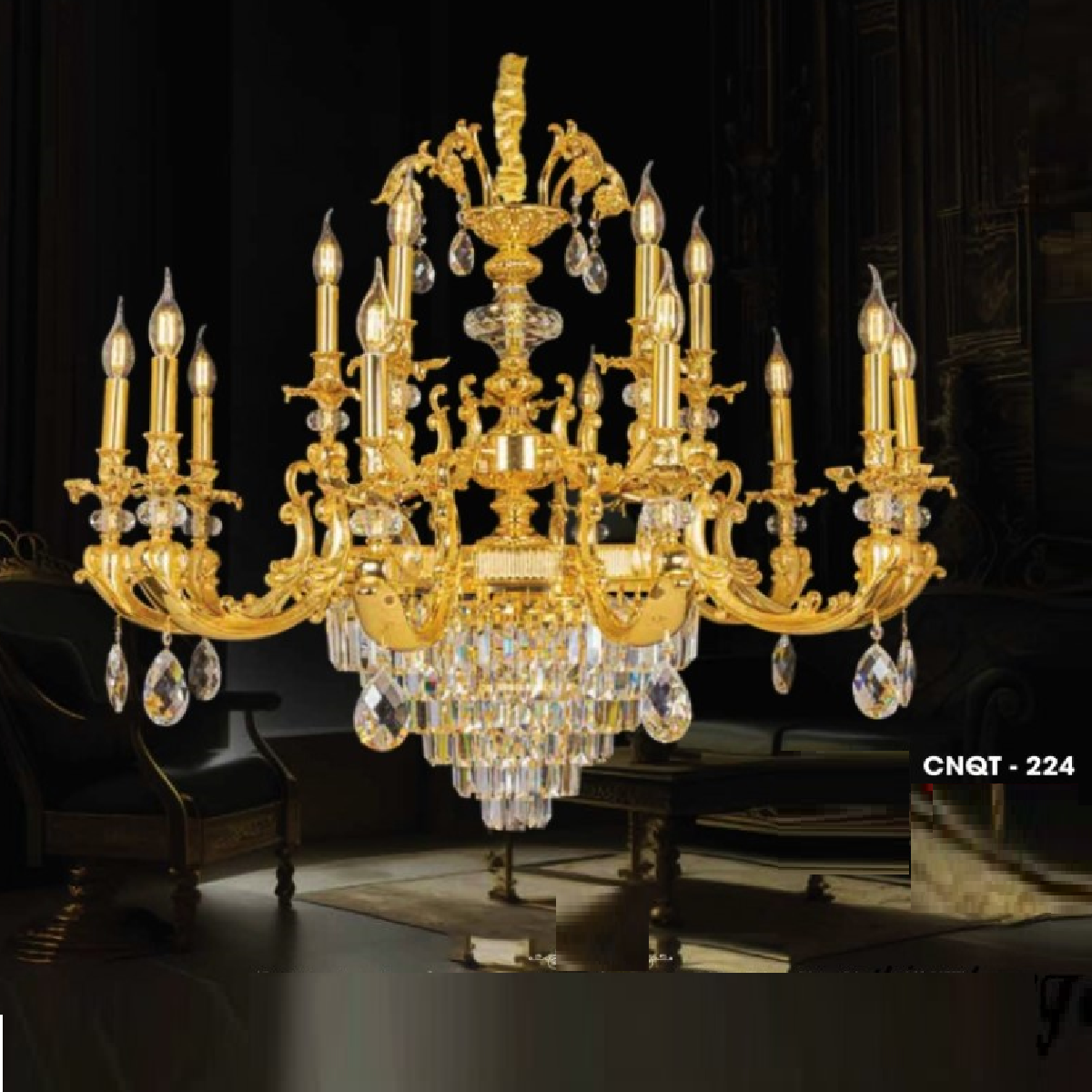 - Sản phẩm: CNQT - 224: Đèn chùm nến 15 tay - KT: Ø900mm x H1000mm - Bóng đèn chân E14 x 15 bóng