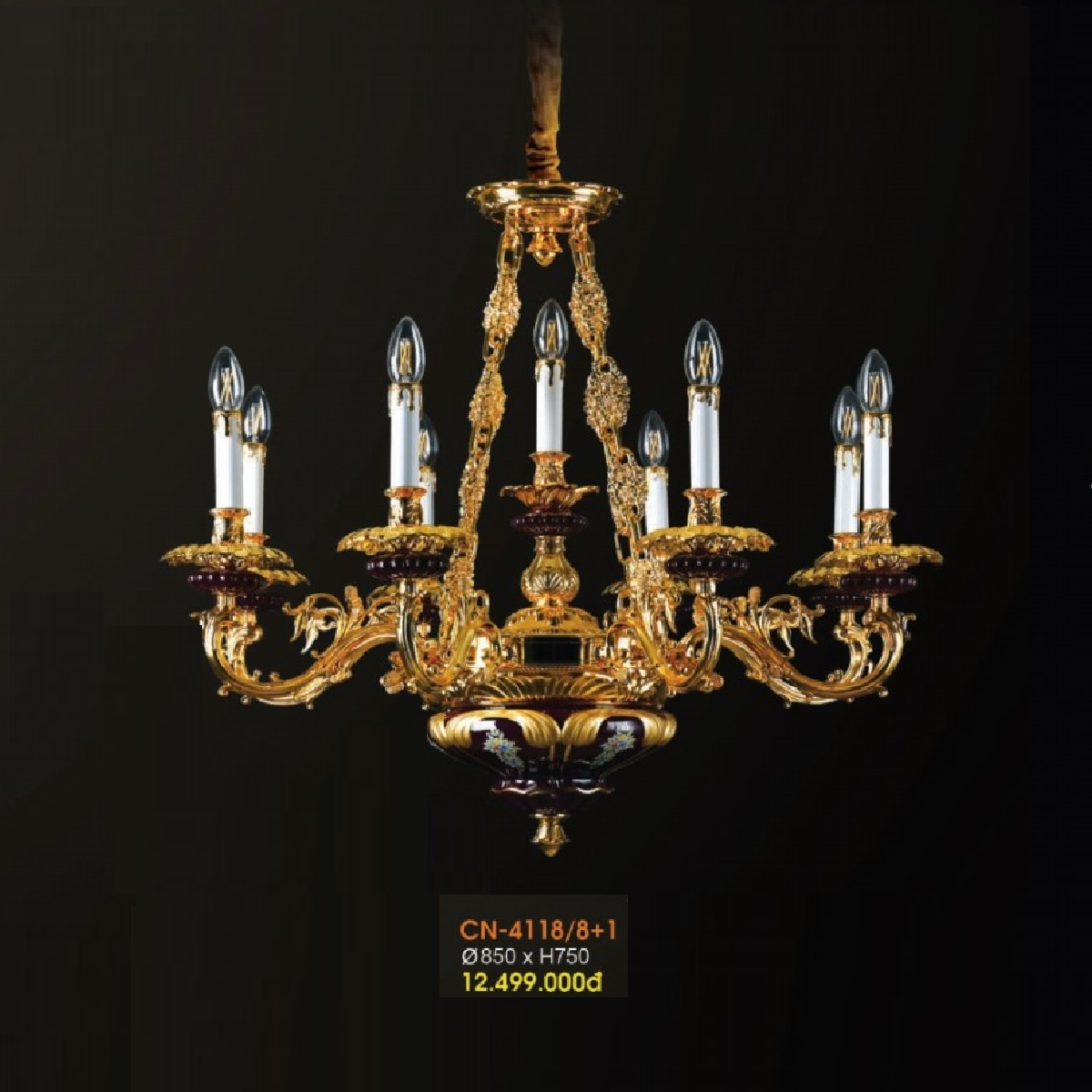 • Sản phẩm: VE - CN - 4118/8+1: Đèn chùm nến 9 tay - KT: Ø850mm x H750mm - Đèn E14 x 9 bóng
